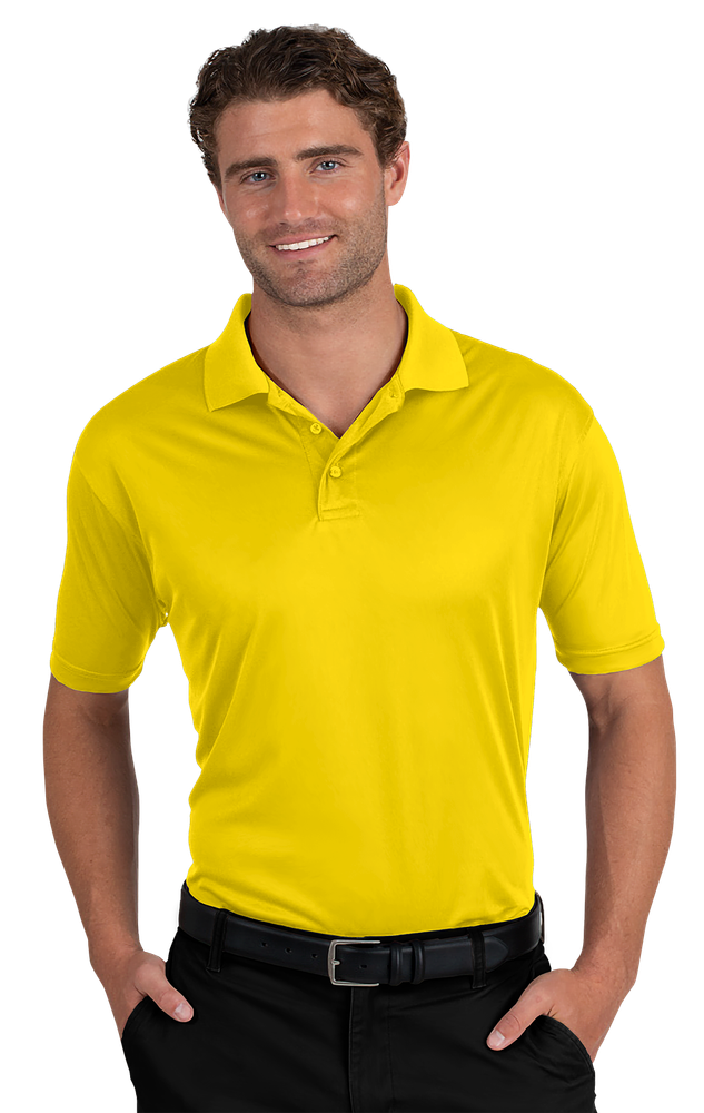 For a prestigious polo perfect for all occasions, look no further than this 3.8 oz. men's value snag-resistant wicking polo shirt! Made of 100% polyester and featuring BLU-X-DRI protection with UPF 30 rating designed to keep you cool and dry, this eye-catching item features matching buttons, a rib-knit and curl-free collar, a taped neck and shoulder and a straight bottom. Don't miss out on this wow-worthy wearable! Available in many colors and sizes ranging from S-6XL and Tall sizes LT-3XT for colors: Optic Yellow, Safety Orange, Royal, Navy, Graphite, and Black only.